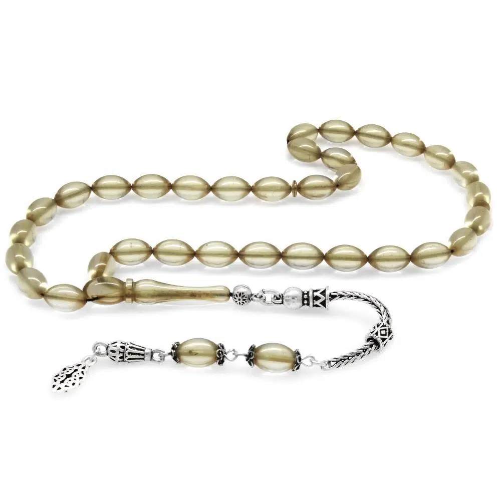 | Etiketler | 925 Ayar Gümüş Püsküllü Arpa Kesim Şeffaf Beyaz Ateş Kehribar Tesbih |