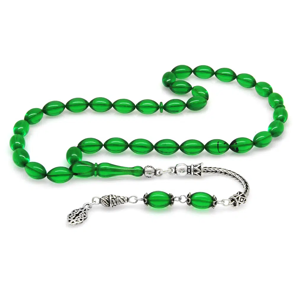 | Etiketler | 925 Ayar Gümüş Püsküllü Arpa Kesim Yeşil Ateş Kehribar Tesbih |