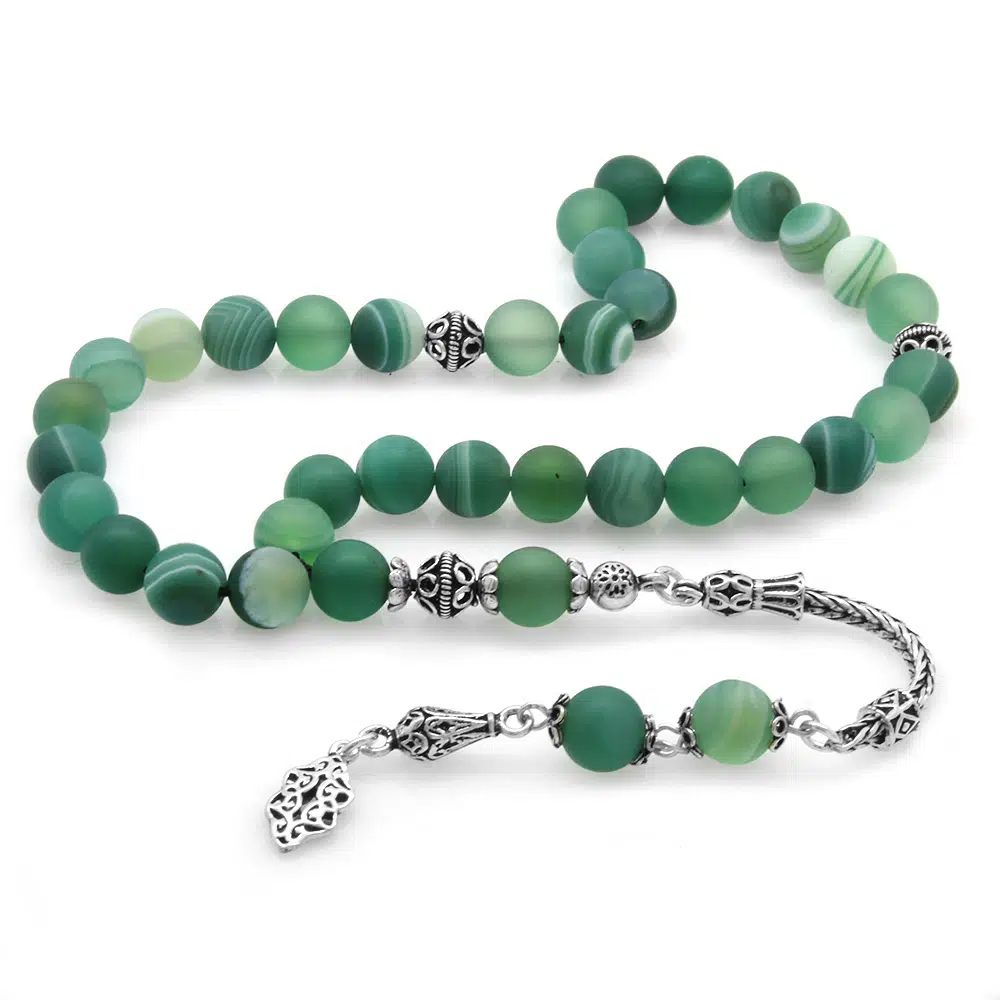 | Etiketler | 925 Ayar Gümüş Püsküllü Küre Kesim Mat Yeşil Beyaz Akik Doğaltaş Tesbih |