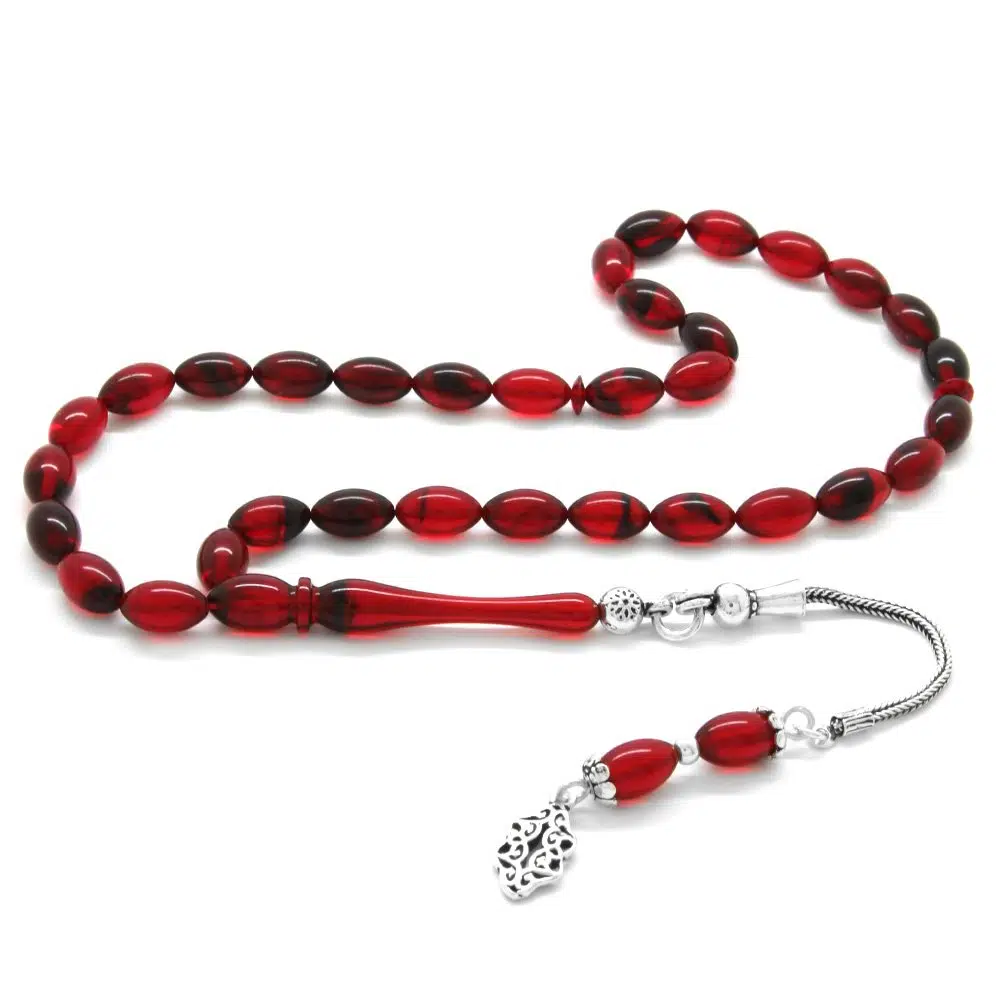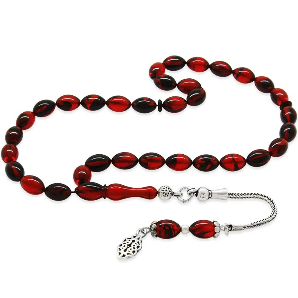 | Etiketler | Ateş Kehribar Tesbih - 925 Ayar Gümüş Püsküllü - Kırmızı Siyah - Bilek Boy - Arpa Kesim |