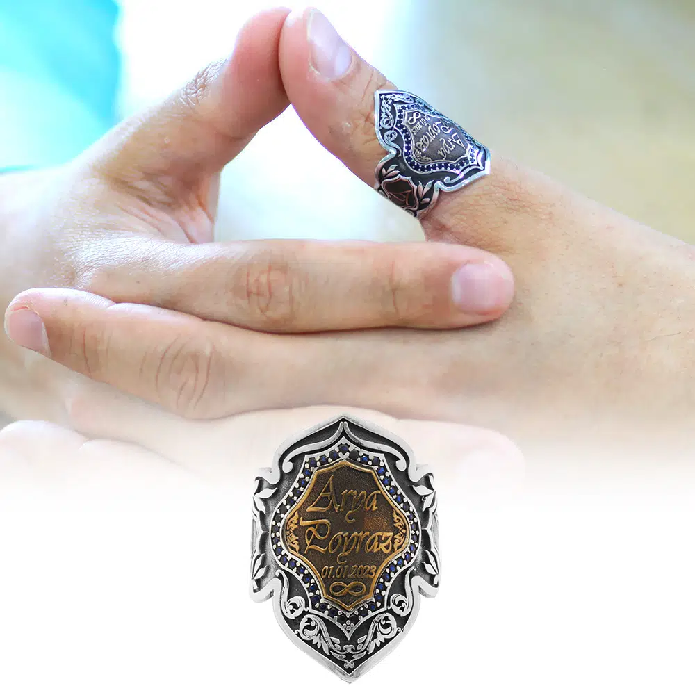 | Etiketler | Ayarlanabilir Ölçü Kenarları Harf Yazılabilir 925 Ayar Gümüş Erkek Okçu Zihgir Yüzük |