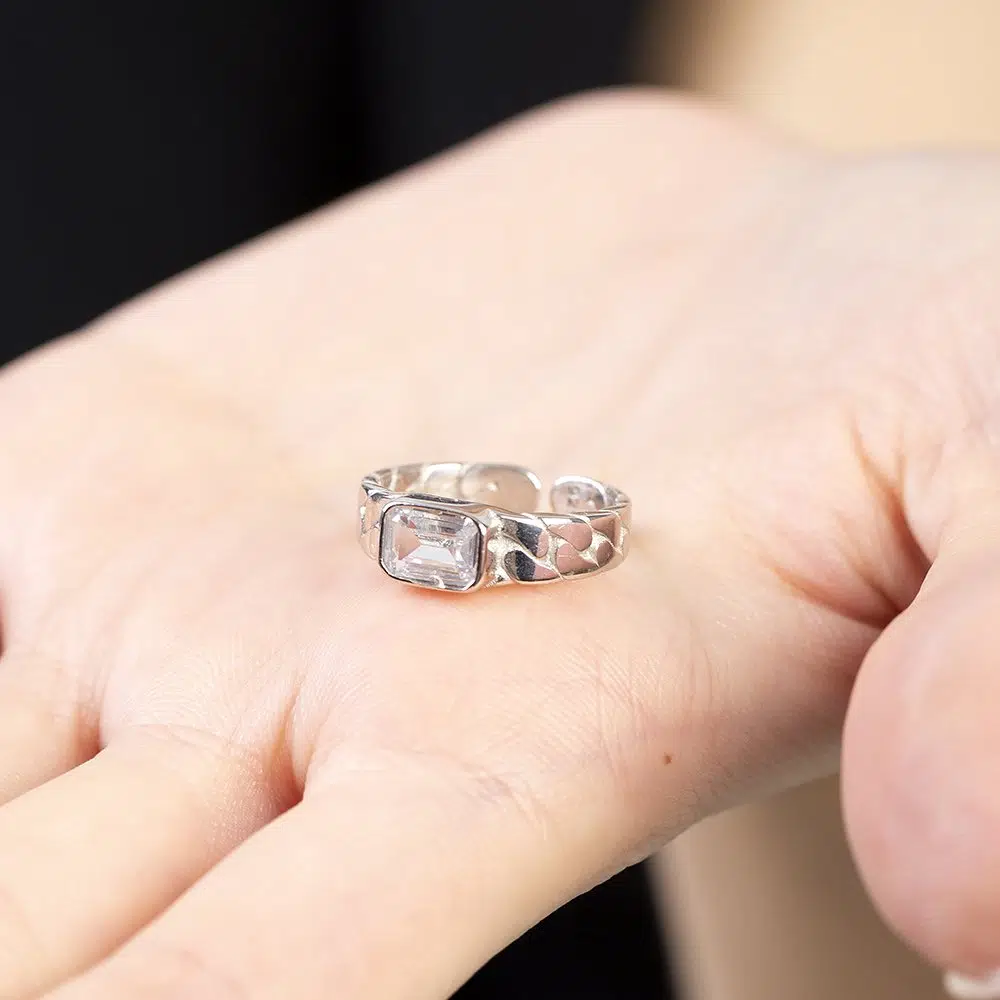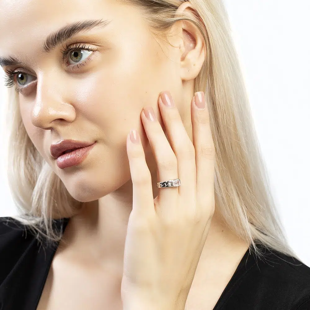 | Etiketler | Beyaz Zirkon Taşlı Zincir Tasarım Gümüş Renk Ayarlanabilir Ölçü 925 Ayar Gümüş Kadın Tektaş Yüzük |