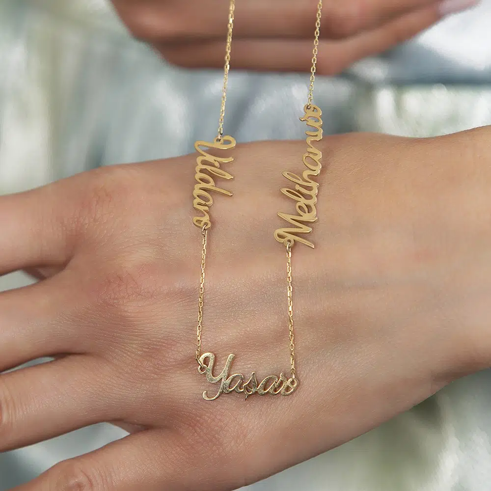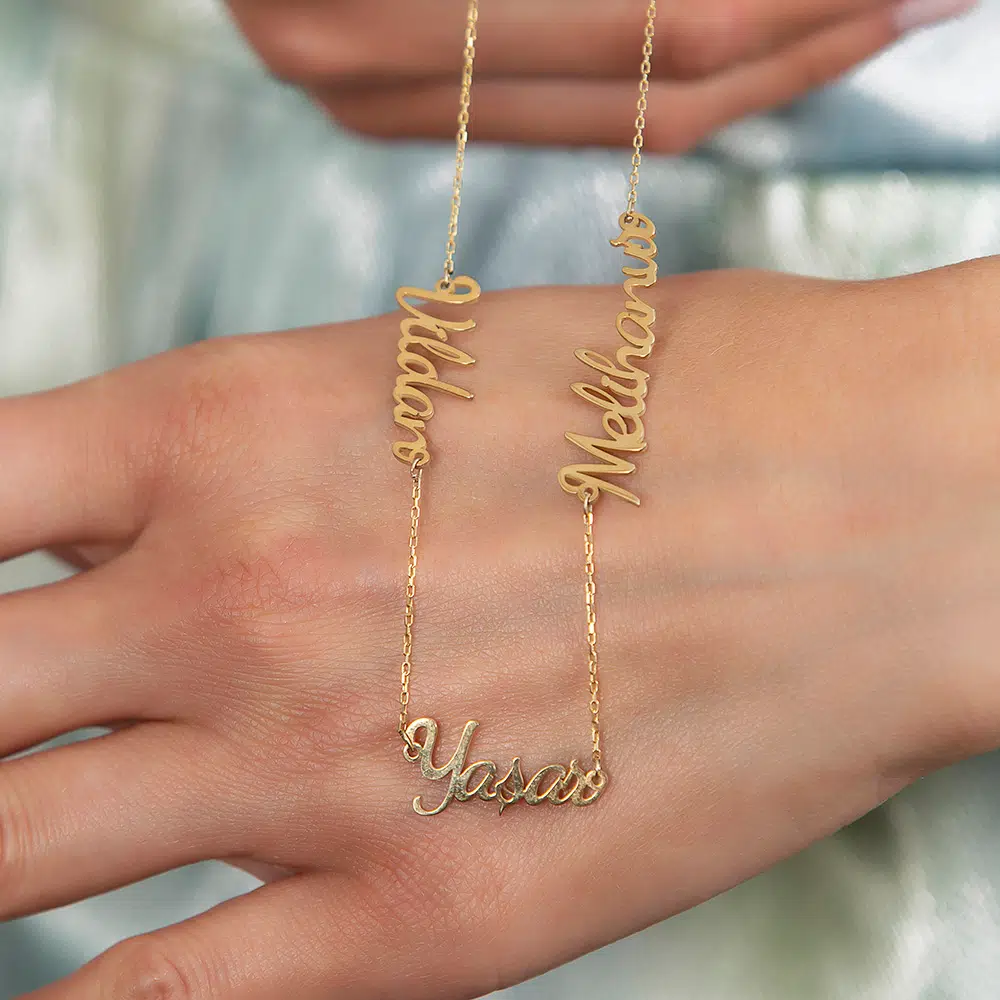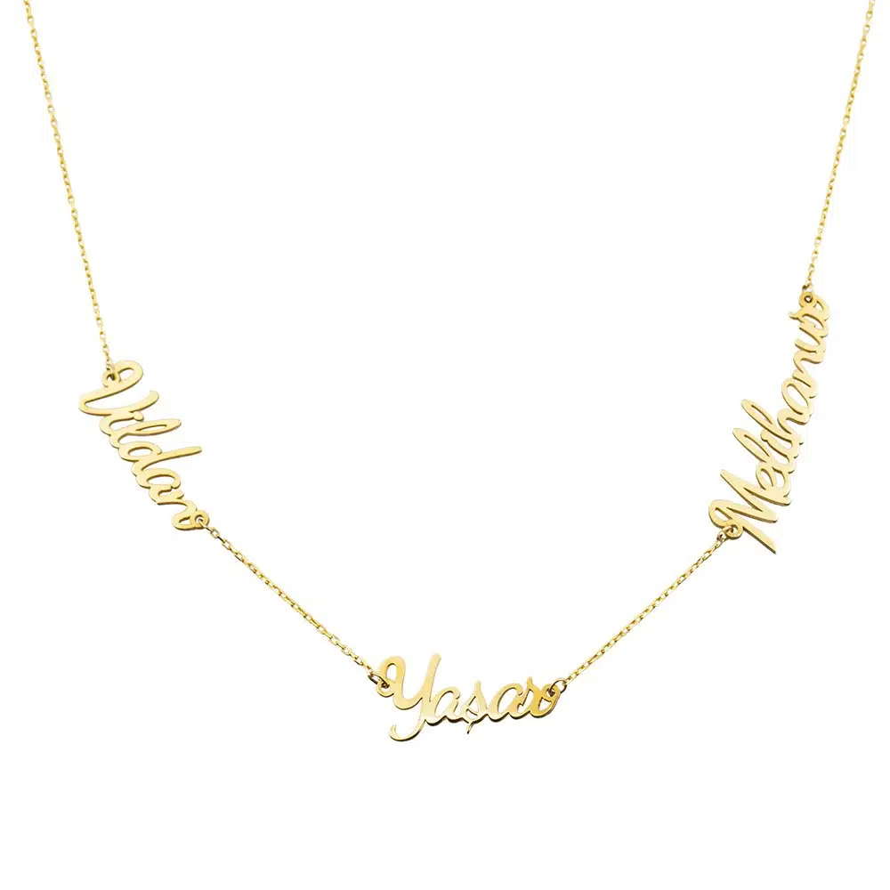 | Etiketler | Kişiye Özel Üç İsim Yazılı Altın Renk 925 Ayar Gümüş Bayan Kolye |