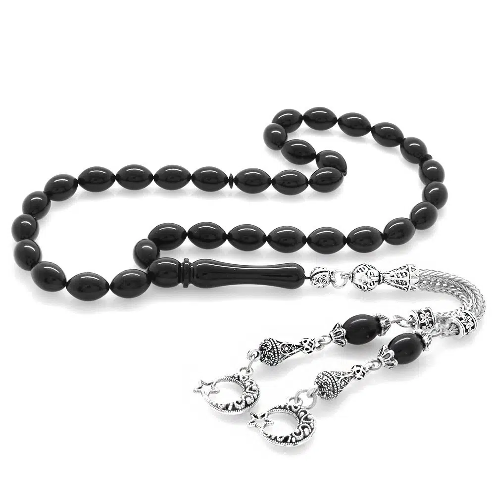 | Etiketler | Nipora Kararmaz Metal Ayyıldız Püsküllü Arpa Kesim Siyah Sıkma Kehribar Tesbih |