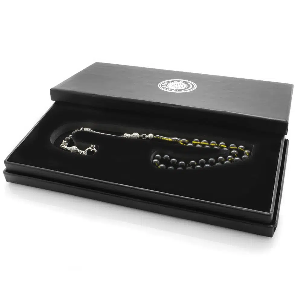 | Etiketler | Nipora Kararmaz Metal Ayyıldız Püsküllü Küre Kesim Sarı-Siyah Ateş Kehribar Tesbih |
