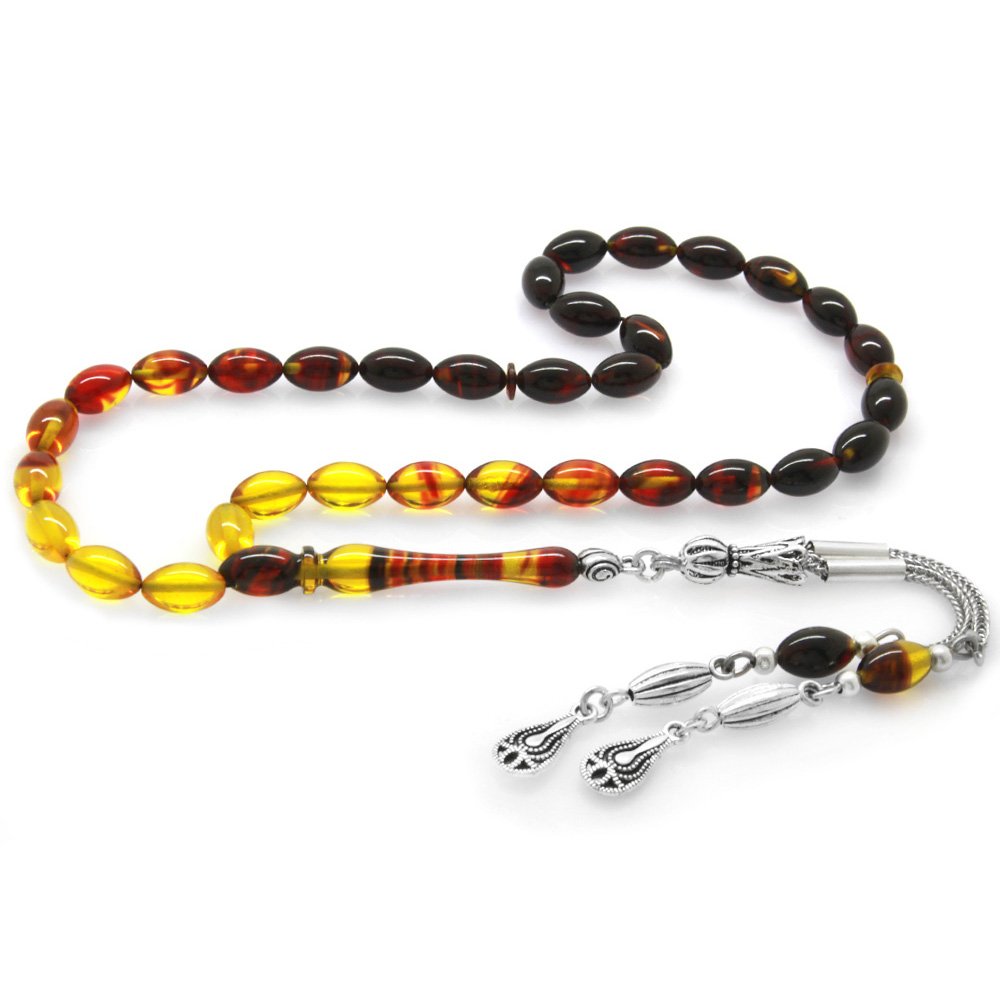 Ateş Kehribar, bilinenin aksine kehribar tozlarının işlenmesi sonucu elde edilen bir madde değildir. Kehribar taşı ile başka maddelerin etkileşime girmesi ile ortaya çıkan bu değerli maddenin üretimine ilk olarak 1700’lü yıllarda başlanmıştır. Ateş Kehribar günümüzde gerçek kehribarlar kadar değerlidir. Maliyetinden dolayı gerçek kehribarlara tercih edilmektedir. En çok talep gören tesbih türüdür.