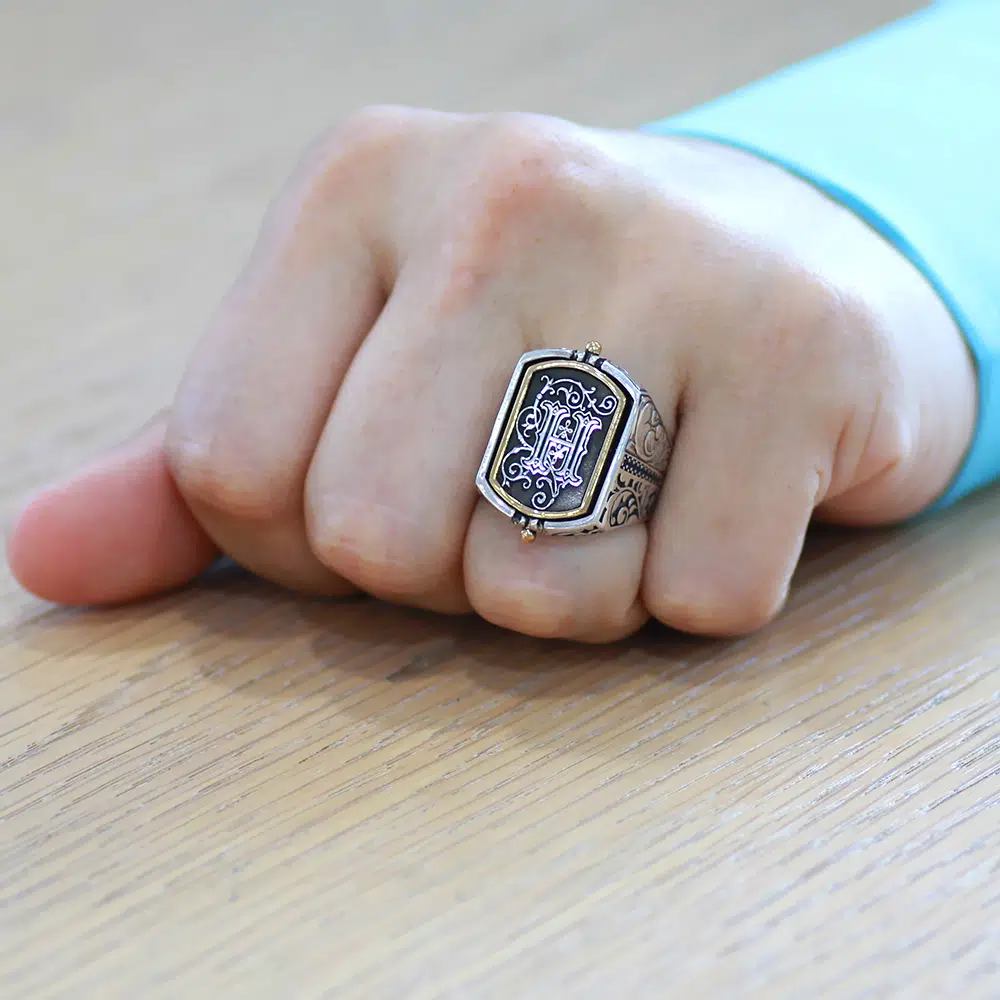 | Etiketler | Siyah Zirkon Taşlı Mıhlamalı Çift Taraflı İsme Özel Harf Yazılı 925 Ayar Gümüş Erkek Yüzük |