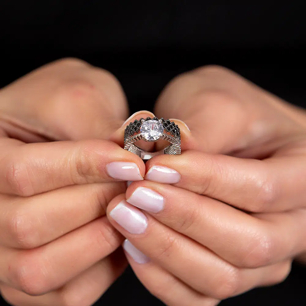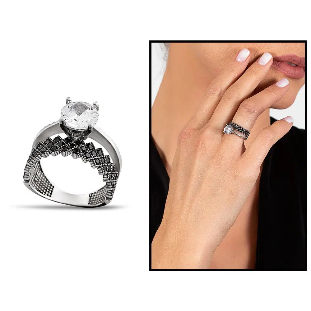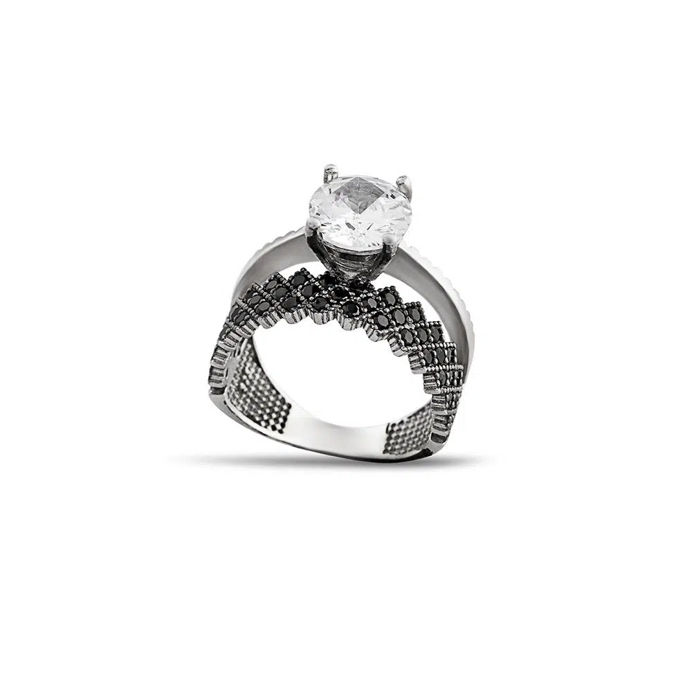 | Etiketler | Siyah Zirkon Taşlı Taç Tasarım 925 Ayar Gümüş Kadın Tektaş Yüzük |