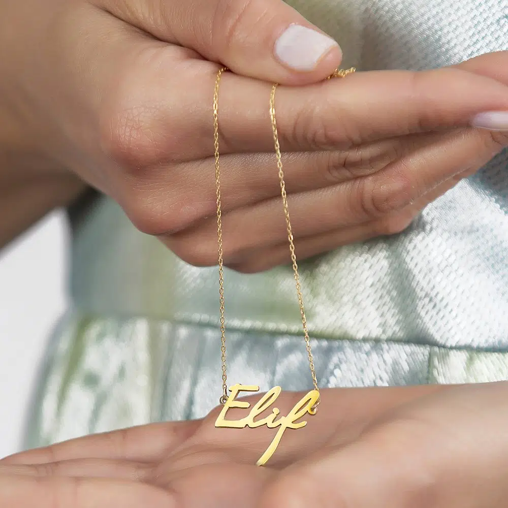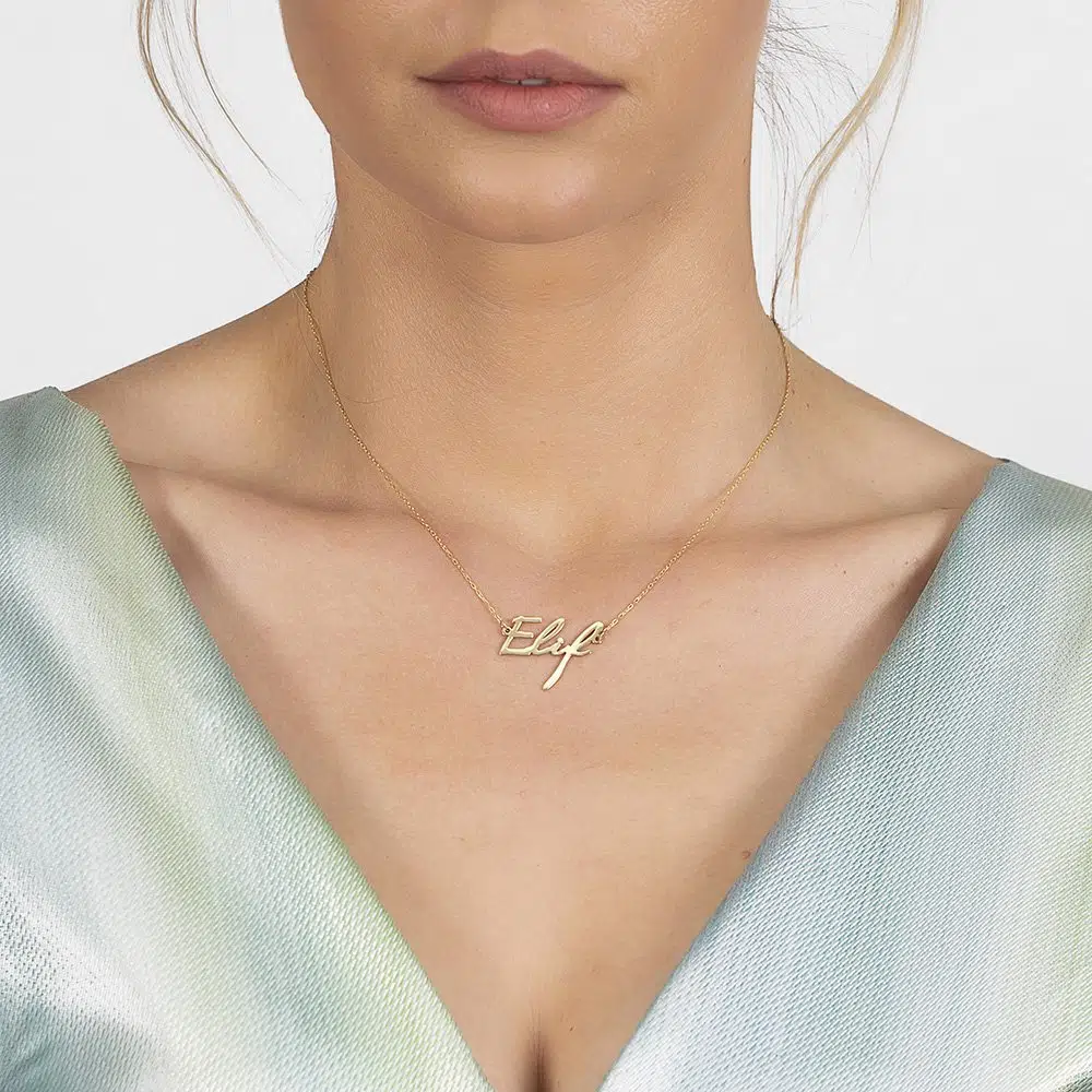 | Etiketler | Yatay Tasarım İsme Özel Yazılı Altın Renk 925 Ayar Gümüş Bayan Kolye |